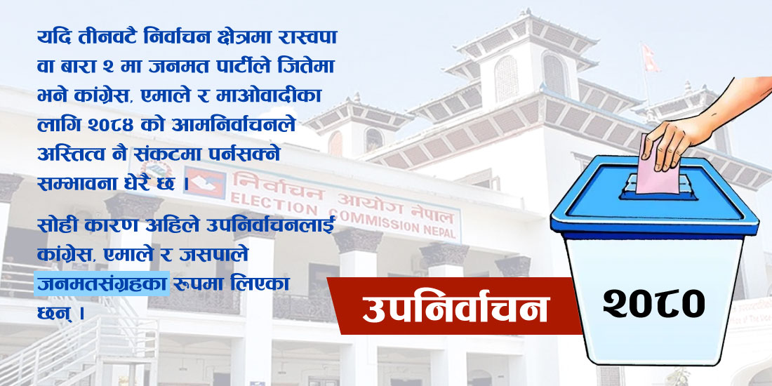 तर, सामाजिक सञ्जाल हेर्दा उपनिर्वाचन ठूला दलका लागि जनमतसंग्रह नै हो कि भन्ने जसरी चर्चा परिचर्चा भइरहेको छ ।