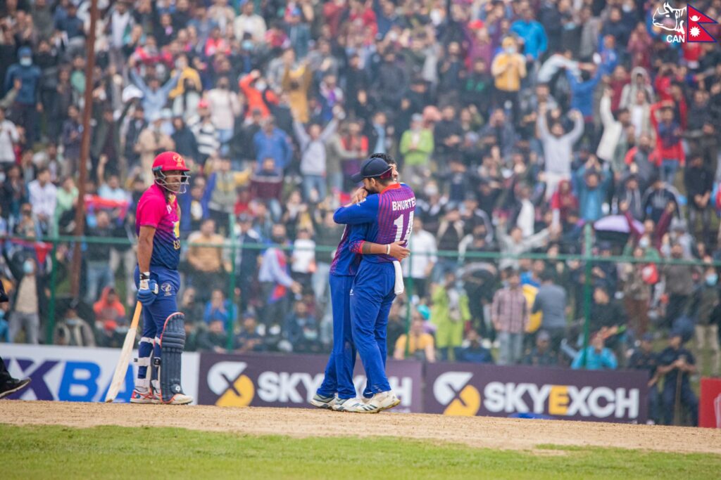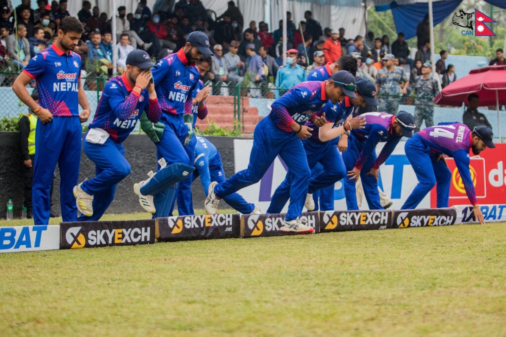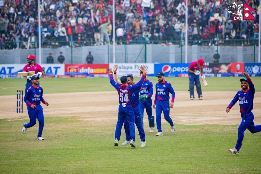 त्यस्तै आजको खेलमा नेपाली बलरहरुले शानदार बलिङ गरिरहेका छन् । नेपालका लागि ललित राजबंशीले ३ विकेट लिएका छन् भने करण केसी र सन्दीप लामिछानेले २-२ विकेट लिए भने सोमपाल कामी र गुलशन झाले एल एक विकेट लिएका छन् ।