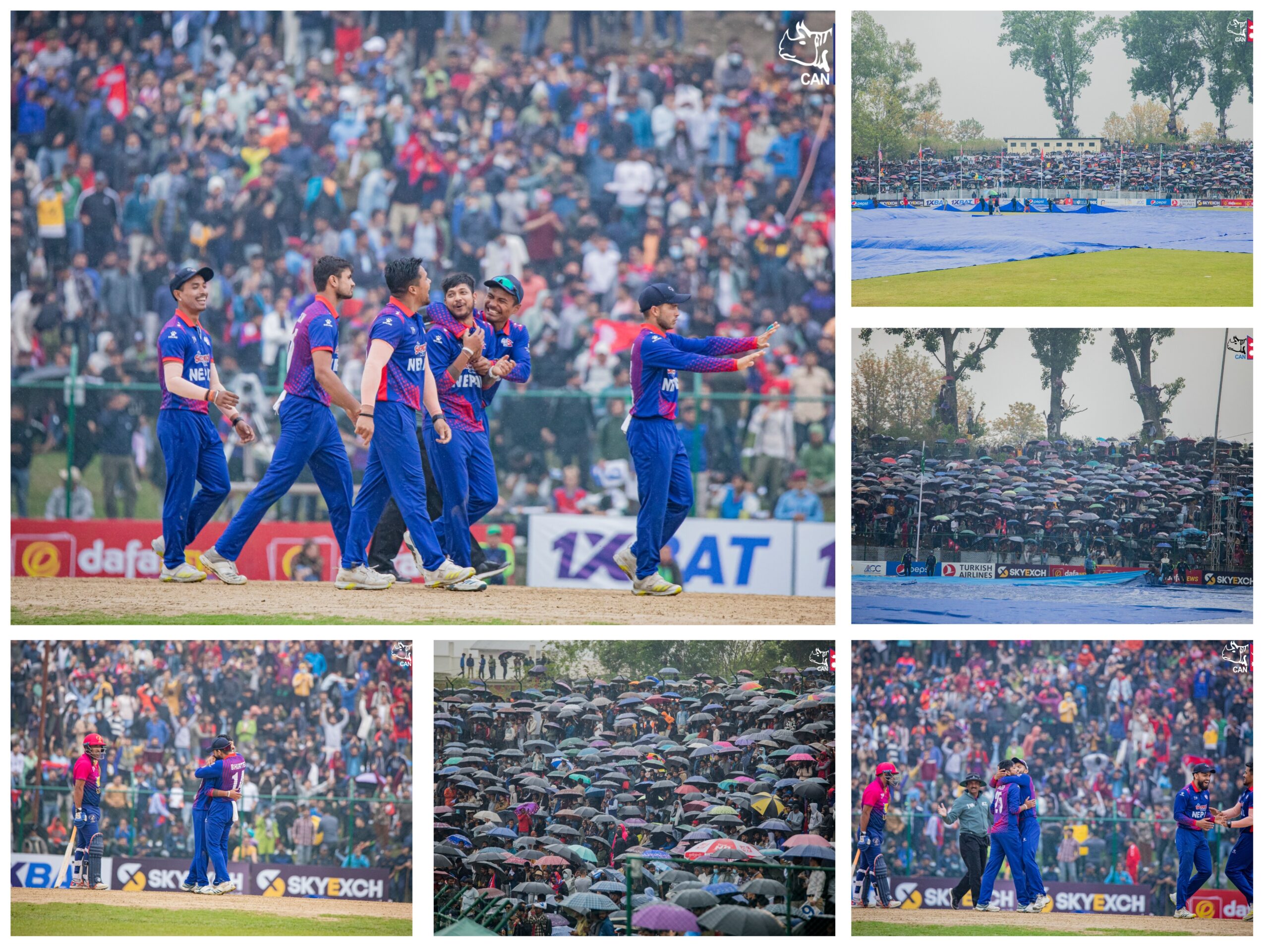 बर्षाले आजको खेल रोकिएमा भोली खेलले निरन्तरता पाउने छ । फाइनल खेलका लागि एक दिनको रिजर्भ डे राखिएको छ । भोलि पनि खेल हुन नसकेमा एकदिवसीय वरियतामा अगाडी रहेका कारण नेपाल एशिया कपमा छनौट हुने छ ।