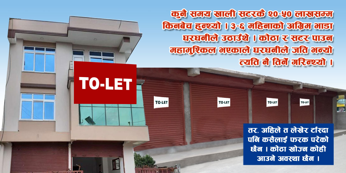 मन्दीले गर्दा अहिले त घरैपिच्छे ‘टुलेट’ को पोस्टर टाँसेको देखिन्छ ।