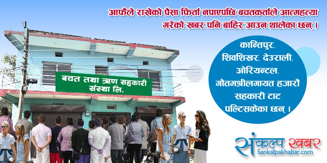 काठमाडौं । अहिले बजारमा नाम चलेका सहकारीहरू दिनदहाडै भागिरहेका छन् । कतिपय सहकारीका सञ्चालक गायब छन्, कतिपय सहकारी बन्द गरिएको छ । कान्तिपुर, शिवशिखर, देउराली, ओरियन्टल, गौतमश्रीलगायत हजारौं सहकारी टाट पल्टिसकेका छन् । सहकारीले पैसा फिर्ता नगरेपछि बचतकर्ताहरू तनावमा परेका छन् ।