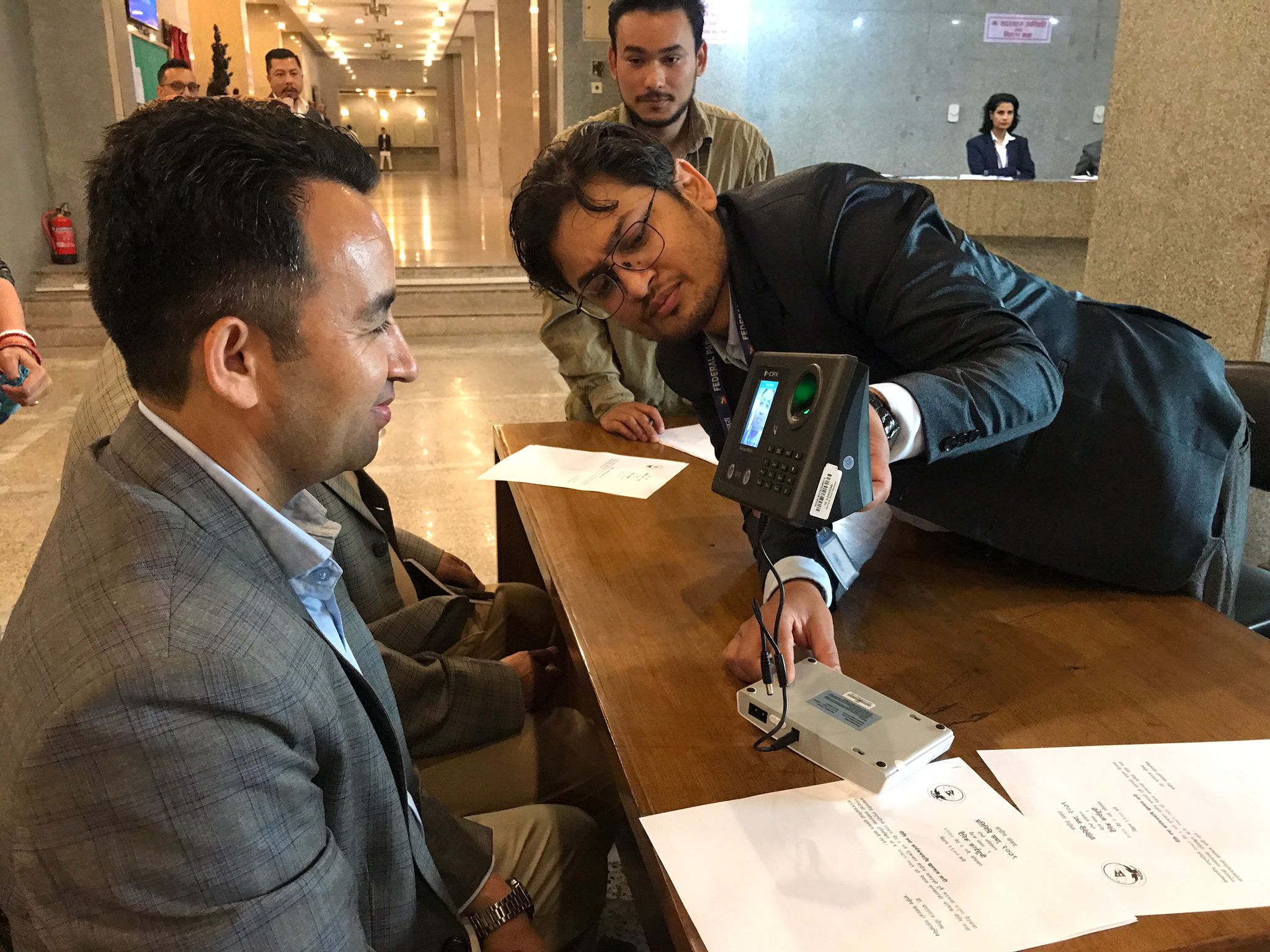 काठमाडौं । संघीय संसदको प्रतिनिधिसभामा पनि विद्युतीय हाजिरी सुरु गर्न थालिएको छ । त्यसका लागि सोमबारदेखि सबै सांसदहरुको बायोमेट्रिक लिन सुरु भएको छ ।