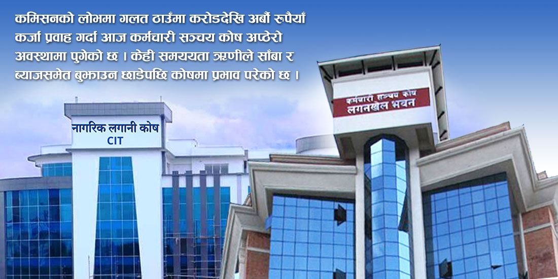 काठमाडौं । कमिसनको लोभमा गलत ठाउँमा करोडदेखि अर्बौ रुपैयाँ कर्जा प्रवाह गर्दा आज कर्मचारी सञ्चय कोष अप्ठेरो अवस्थामा पुगेको छ । केही समययता ऋणीले साँबा र ब्याजसमेत बुझाउन छाडेपछि कोषमा प्रभाव परेको छ ।