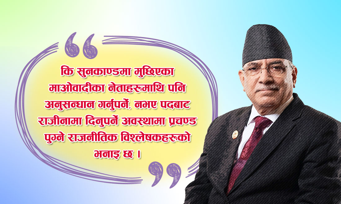 यदि एमालेको अहिलेकै मागमा राजी भएर प्रचण्डले उच्चस्तरीय छानबिन समिति गठन गरे उनका लागि नै प्रत्युत्पादक हुने अनुमान गरिएको छ । सुनकाण्डमा माओवादीका अधिकांश नेता मुछिएका छन् । भोलि यही विषयलाई लिएर एमालेले प्रधानमन्त्रीको पनि राजीनामा माग गर्नसक्ने आशंका गरिएको छ । त्यसो भएमा प्रधानमन्त्री प्रचण्डलाई नै नैतिक संकट पर्ने छ । किनभने कि सुनकाण्डमा मुछिएका माओवादीका नेताहरूमाथि पनि अनुसन्धान गर्नुपर्ने, नभए पदबाट राजीनामा दिनुपर्ने अवस्थामा प्रचण्ड पुग्ने राजनीतिक विश्लेषकहरूको भनाइ छ ।