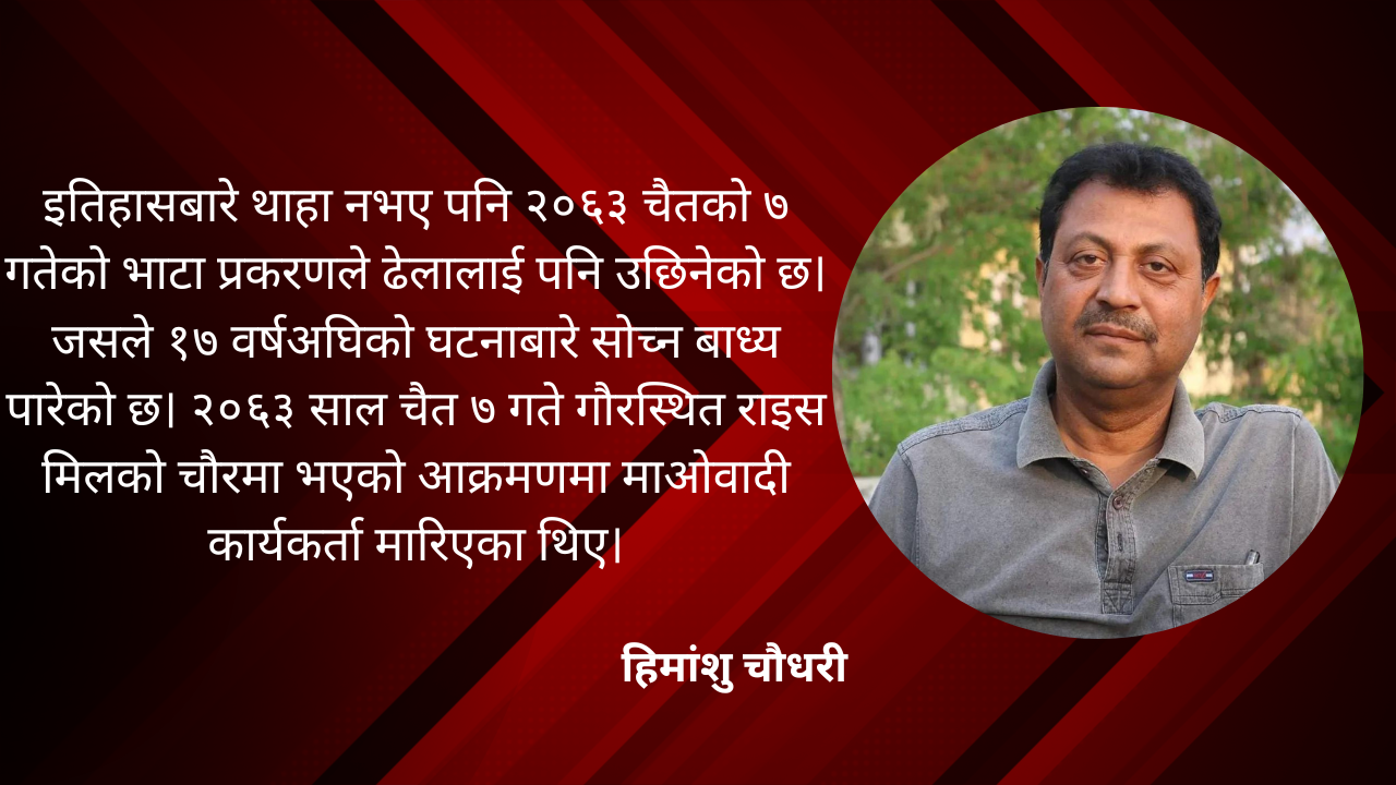 ढेलाको इतिहासबारे थाहा नभए पनि २०६३ चैतको ७ गतेको भाटा प्रकरणले ढेलालाई पनि उछिनेको छ। जसले १७ वर्षअघिको घटनाबारे सोच्न बाध्य पारेको छ। २०६३ साल चैत ७ गते गौरस्थित राइस मिलको चौरमा भएको आक्रमणमा माओवादी कार्यकर्ता मारिएका थिए।