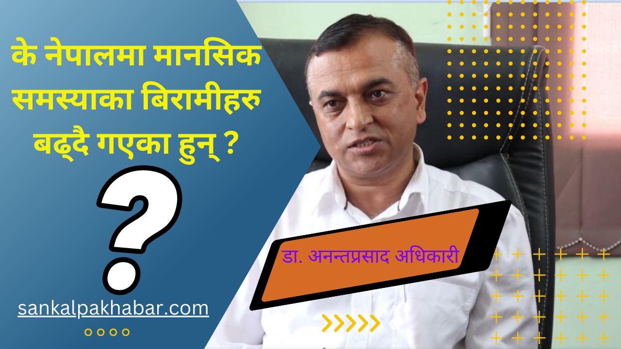 मानसिक समस्याका कारण र समाधान लगायत विषयमा केन्द्रित रहेर ललितपुरस्थित मानसिक अस्पतालका निर्देशक डा. अनन्तप्रसाद अधिकारीसँग गरिएको कुराकानी प्रश्तुत छ ।