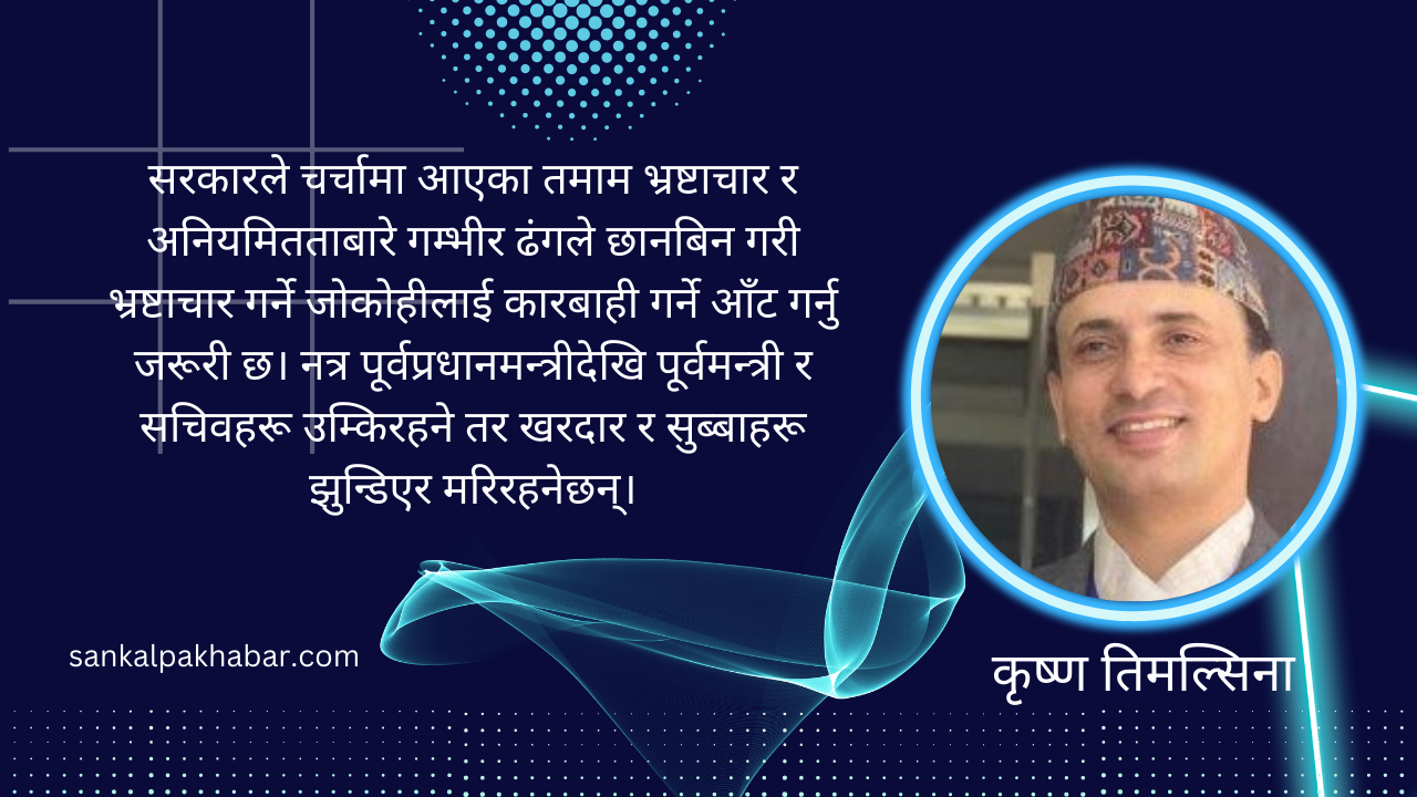 यसले देशमा भ्रष्टाचारीले सधैँ उन्मुक्ति पाइरहने र सरकार भने भ्रष्टाचारीको अनुहारै नहेर्ने दाबी गरेर जनतालाई बेबकुफ बनाइरहने प्रवृत्ति निरन्तर मौलाएको छ। मुलुकले भ्रष्टाचारमा कीर्तिमान कायम गर्दै गर्दा वर्तमान सरकारले आंशिक रूपमा केही सकारात्मक सुरुवात त गरेको छ तर सुशासन र शून्य सहनशीलताको डम्फू ठूला माछाको कानसम्म बज्नेमा पुरानै आशंका छ। अन्यथा सरकारले चर्चामा आएका माथिका तमाम भ्रष्टाचार र अनियमितताबारे गम्भीर ढंगले छानबिन गरी भ्रष्टाचार गर्ने जोकोहीलाई कारबाही गर्ने आँट गर्नु जरूरी छ। नत्र पूर्वप्रधानमन्त्रीदेखि पूर्वमन्त्री र सचिवहरू उम्किरहने तर खरदार र सुब्बाहरू झुन्डिएर मरिरहनेछन्।
