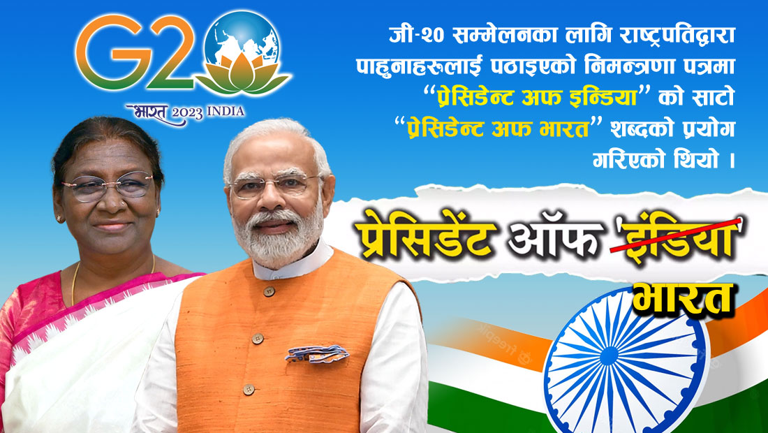 काठमाडौं । देशको नामको विषयलाई लिएर छिमेकी देश भारतमा सत्तारुढ र विपक्षी दलबीच विवाद देखिएको छ । भारतमा हुन लागेको जी–२० शिखर सम्मेलनको अवसरमा भारतीय राष्ट्रपतिको तर्फबाट दिइने रात्रिभोजका लागि छापिने निमन्त्रणा पत्रलाई लिएर विवाद सुरु भएको हो ।