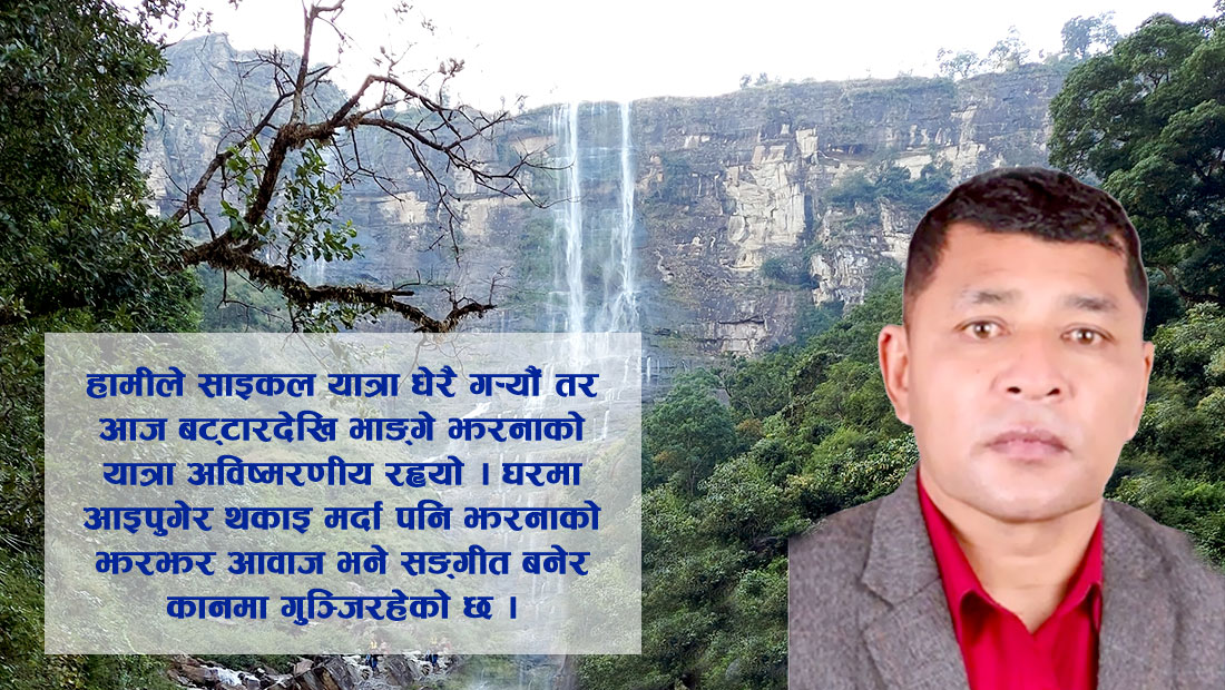 बाटो हिँड्दा पहराबाट खसेको पानीको शीकरले शरीरमा स्पर्श गर्दा छुट्टै आनन्द आउँछ । पहराको खोँचै खोँच हिँड्न पर्ने । कतै पहरा नै खसेर भौतिक क्षति त हुने होइन भन्ने डरले सताउँछ हामी सबैलाई ।