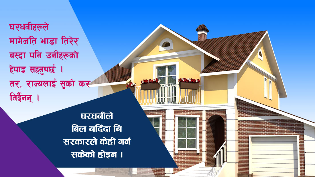 निजी भन्ने अनि लुटतन्त्र मच्चाउने । एकातर्फ राज्य ठग्ने, अर्कोतर्फ कोठाबहाल ।सरकारले कुन घर आवासीय प्रयोजनमा प्रयोग गर्ने ? कुन घरमा व्यापार व्यवसाय गर्ने ? कुन घरमा कार्यालय सञ्चालन गर्ने ? यो छुटाउनुपर्ने भएको छ । बस्नलायक घर पनि छुट्याउनुपर्ने भएको छ । घरधनीहरू आफू चाहिँ नयाँ घरमा बस्छन् अनि पुरानो घर भाडामा लगाउँछन् । केही कारणवश पुरानो घर भत्किएर मानवीय क्षति पुग्यो भने को जिम्मेवार हुन्छ ?एउटा घरमा घरधनीहरूको करोडौं रुपैयाँ लगानी हुन्छ । तर, खोइ त राजश्व ? न घरहरू घरेलु र कम्पनीमा गएर पञ्जीकरण गर्ने सिस्टम हामीकहाँ छ ।