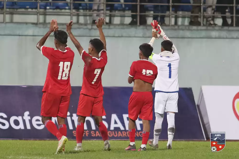सोमबार दशरथ रंगशालामा सम्पन्न खेलमा नेपालले माल्दिभ्सलाई ४-१ गोल अन्तरले पराजित गर्दै नेपालले सेमिफाइनलमा आफ्नो स्थान सुरक्षित गरेको हो ।