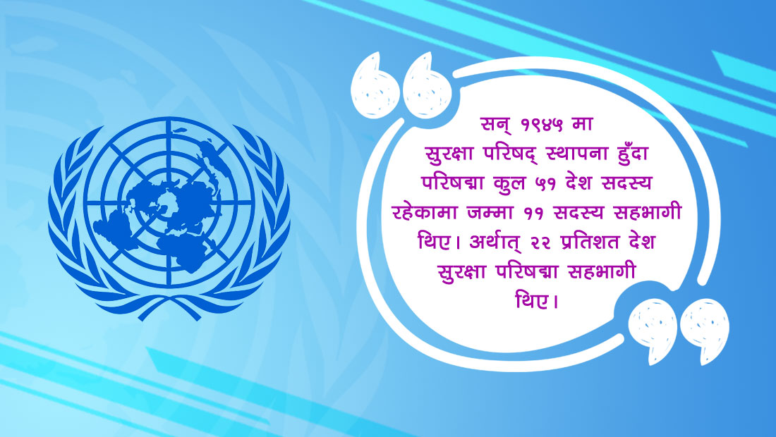 सन् १९४५ मा सुरक्षा परिषद् स्थापना हुँदा परिषद्मा कुल ५१ देश सदस्य रहेकामा जम्मा ११ सदस्य सहभागी थिए। अर्थात् २२ प्रतिशत देश सुरक्षा परिषद्मा सहभागी थिए।