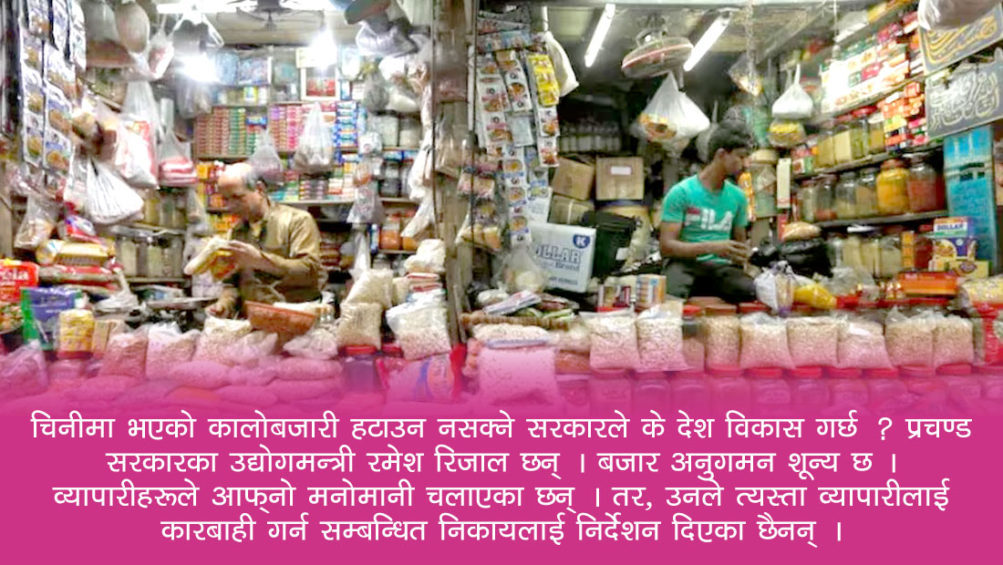 सर्वसाधारण जनता बजार अनुगमन गर्न र कालोबजारी गर्नेलाई कारबाही गर्न माग गरिरहेका छन्, सरकार कानमा तेल हालेर बसेको छ ।जनताको आवाज नसुन्ने यस्तो सरकार हुनुको के फाइदा ? चिनीमा भएको कालोबजारी हटाउन नसक्ने सरकारले के देश विकास गर्छ ? प्रचण्ड सरकारका उद्योगमन्त्री रमेश रिजाल छन् । बजार अनुगमन शून्य छ । व्यापारीहरूले आफ्नो मनोमानी चलाएका छन् । तर, उनले त्यस्ता व्यापारीलाई कारबाही गर्न सम्बन्धित निकायलाई निर्देशन दिएका छैनन् । बरु कालोबजारी नियन्त्रण गर्न सकिनँ भनेर मिडियालाई प्रतिक्रिया दिइरहेका छन् । जिम्मेवारी लिइसकेपछि सकिनँ भनेर उम्किन पाइन्छ ? नैतिकताले दिन्छ ? सरकारसँग अब दुइटा उपाय छ