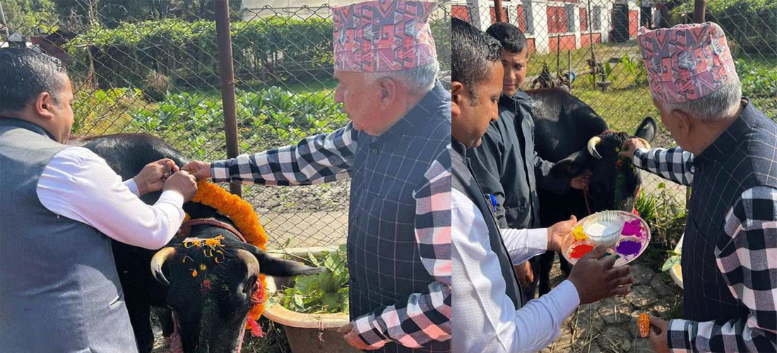 शीतलनिवासमा विधिपूर्वक गाईको पूजा गरी राष्ट्रपति पौडेलले मिठामिठा खानेकुरा गाईलाई खुवाएका छन् । गाईलाई पवित्र मानी पूजा गर्ने वैदिक सनातन कालदेखिको परम्परा हो। गाईले दिने दूध आमाले खुवाएको दूधजत्तिकै पौष्टिक हुने भएकाले गाईलाई गौमाताको रुपमा लिने प्रचलन चलि आएको छ । यस्तै गाई नेपालीहरुको राष्ट्रिय जनावर पनि हो ।