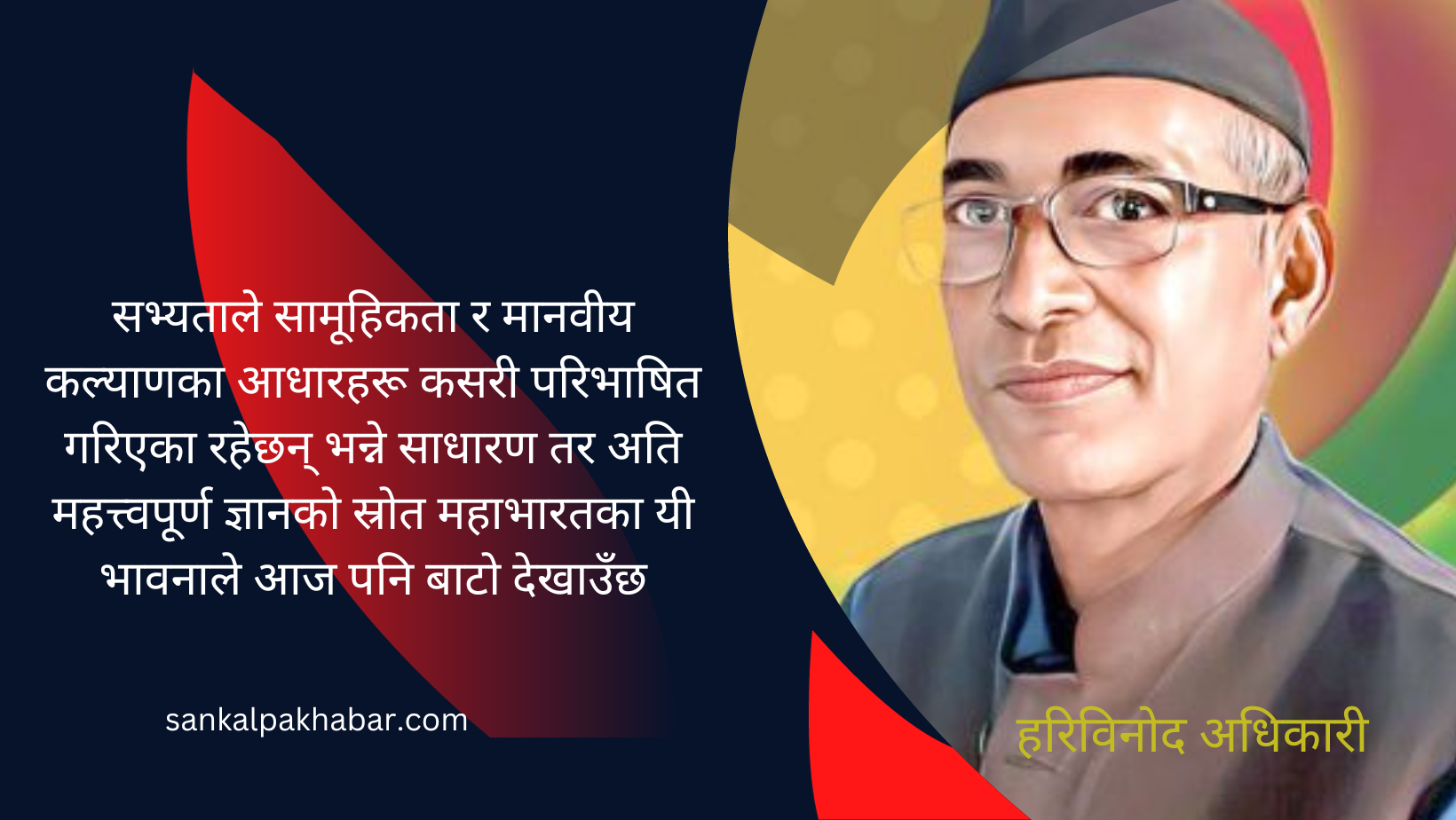 हुन त यी उपयुक्त कुराहरू आजभन्दा ५ हजार वर्ष अघिका हुन्। त्यस बेलामा पनि मानवीय सभ्यताले कति उँचाइ लिएको रहेछ भन्ने कुरा र असल कसलाई मान्ने अनि कसलाई वन्दना गर्ने या पूजा गर्ने भन्ने मानक तयार भएको रहेछ भन्ने एउटा उदाहरण मात्र हो। सभ्यताले सामूहिकता र मानवीय कल्याणका आधारहरू कसरी परिभाषित गरिएका रहेछन् भन्ने साधारण तर अति महत्त्वपूर्ण ज्ञानको स्रोत महाभारतका यी भावनाले आज पनि बाटो देखाउँछ र पूर्वीय सभ्यताको उज्यालो गोरेटोले त्यसै मानवीय राजमार्गको स्वरूप लिएको होइन रहेछ भन्ने प्रमाणित भएको छ।INS
