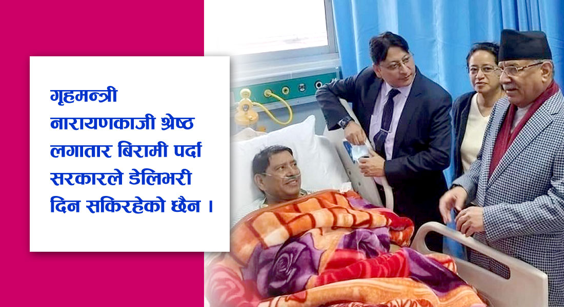 जनतामा सरकारको कामप्रति असन्तुष्टि बढिरहेका बेला गृहमन्त्री आफैं विरामी पर्दा प्रचण्डलाई ठूलै संकट आइपरेको छ । पुस तेस्रो साता मन्त्रिपरिषद् पुनर्गठनमा लागेका प्रचण्ड सबैभन्दा पहिले नारायणकाजी श्रेष्ठलाई सरकारबाट बिदा दिने मनस्थितिमा पुगेको बुझिएको छ । सकभर आफ्नै पार्टीबाट गृहमन्त्री बनाउने नभए रास्वपालाई सरकारमा ल्याएर रवि लामिछानेलाई मन्त्रालयको जिम्मेवारी दिने तयारीमा प्रचण्ड रहेको चर्चा सुरु भएको छ ।