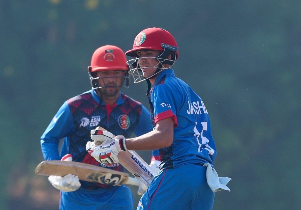 अफगानिस्तानका जाम्शिद जद्रानले १५२ बलमा आठ चौकासहित १०६ रनको शतकीय इनिङ खेलेका थिए । उनी खुट्टामा समस्याका कारण रिटायर्ड हर्ट भएका थिए । नौमान साह अघाले ४१ बलमा पाँच चौका र तीन छक्कासहित ६० रनको आक्रामक इनिङ खेलेका थिए ।