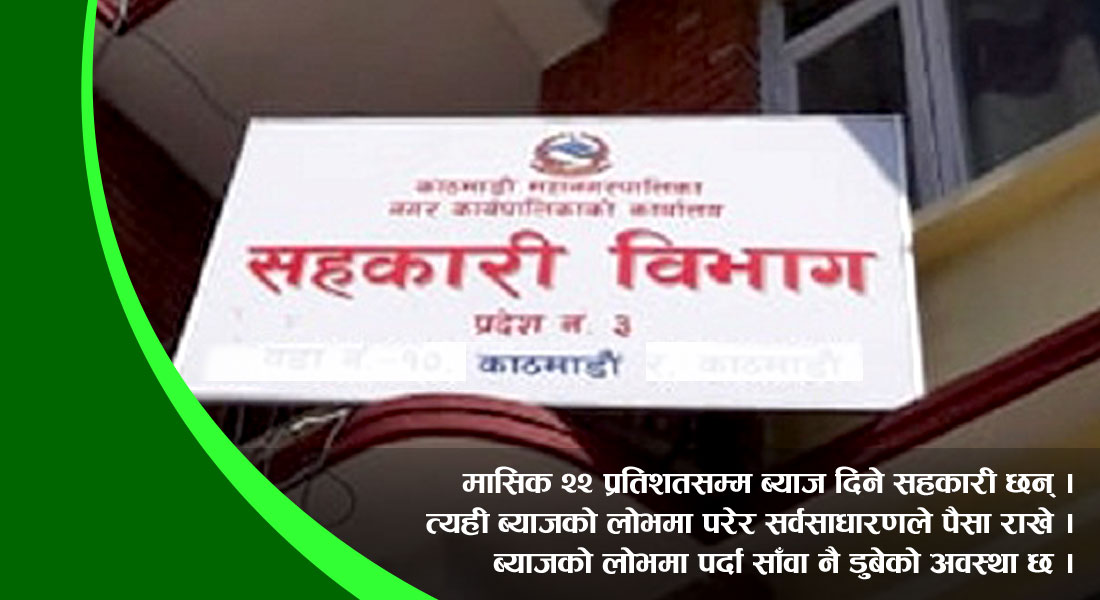 सहकारीले बजारबाट पैसा तान्न ब्याजको पासो फाल्यो । मासिक २२ प्रतिशतसम्म ब्याज दिने सहकारी छन् । त्यही ब्याजको लोभमा परेर सर्वसाधारणले पैसा राखे । ब्याजको लोभमा पर्दा साँवा नै डुबेको अवस्था छ । सहकारीले पीडित बनाएको सायदै कोही होला । सहकारीबाट डुबेका पीडितहरू पाइलैपिच्छे भेटिन्छन् । पाँच हजारदेखि करोडसम्म गुमाउनेहरू सडकमा भेटिन्छन् । भूपूउपराष्ट्रपतिदेखि मुख्यसचिव, सचिव, महानिर्देशक, राजनीतिक दलका नेता, पत्रकार, व्यापारीलगायत सबैको बचत सहकारीले पचाइदियो । अहिले सबैले सहकारीका सञ्चालक र कर्मचारीहरूलाई ‘चोर’ भनिरहेका छन् । दोसल्लाको साटो करोडौं रुपैयाँ गुमाउनेहरू छन् ।