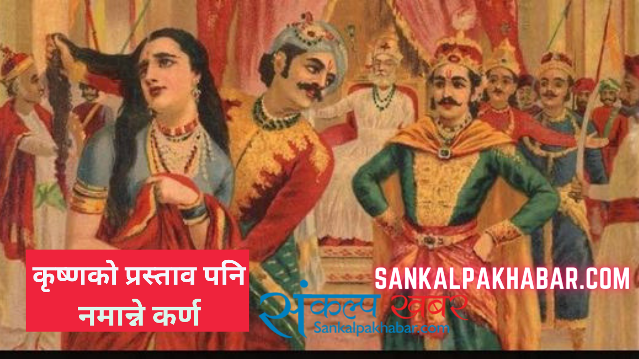 उसलाई पितामह, गुरुहरू द्रोणाचार्य, कृपाचार्यहरूले निष्पक्षताका साथ उसका पक्षमा बोल्लान्, युद्ध गर्लान् भन्ने नै छैन र मेरै भरमा संसारको चक्रवर्ती हुने सपना छ। विदुरजीसँग त उसलाई पहिले देखि नै विश्वास छैन। खालि काका भएकाले मात्र दरबारमा आउन जान दिएको हो, महामन्त्रीकै रूपमा त त्यो पदबाट उहिल्यै निकाल्ने थियो। कृष्णले भन्यो रे, —राज्यको सम्राट् हुन पाउँछौ। त्यति मात्र होइन कर्ण, तिमीले त द्रौपदी पनि भोग गर्न पाउँछौ। अनि हाँस्यो रे।