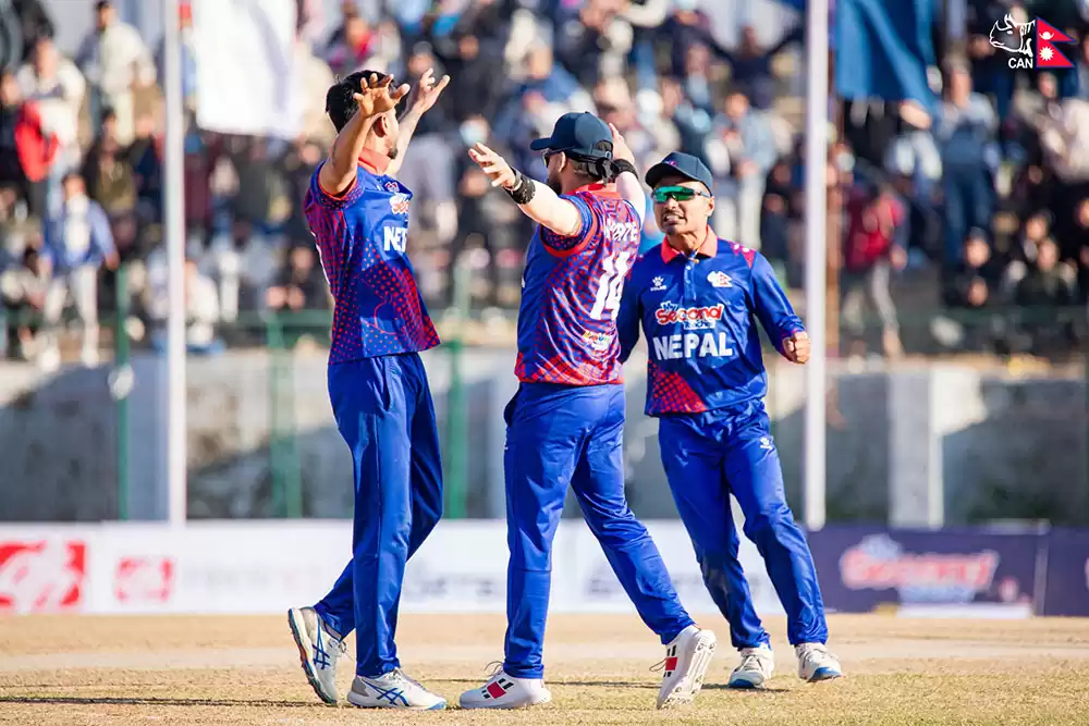 नेपालका लागि कुशल भुर्तेलले सर्बाधिक ६२ रन बनाएका थिए भने आरिफ सेखले ३८, सोमपाल कामीले २७, कुशल मल्लले २०, भीम सार्कीले १७, पवन सराफले १५, आसिफ सेख र रोहित पौडेलले ८-८ तथा सुर्य तामाङले १० र रिजन ढकालले ४ रन बनाएका थिए ।