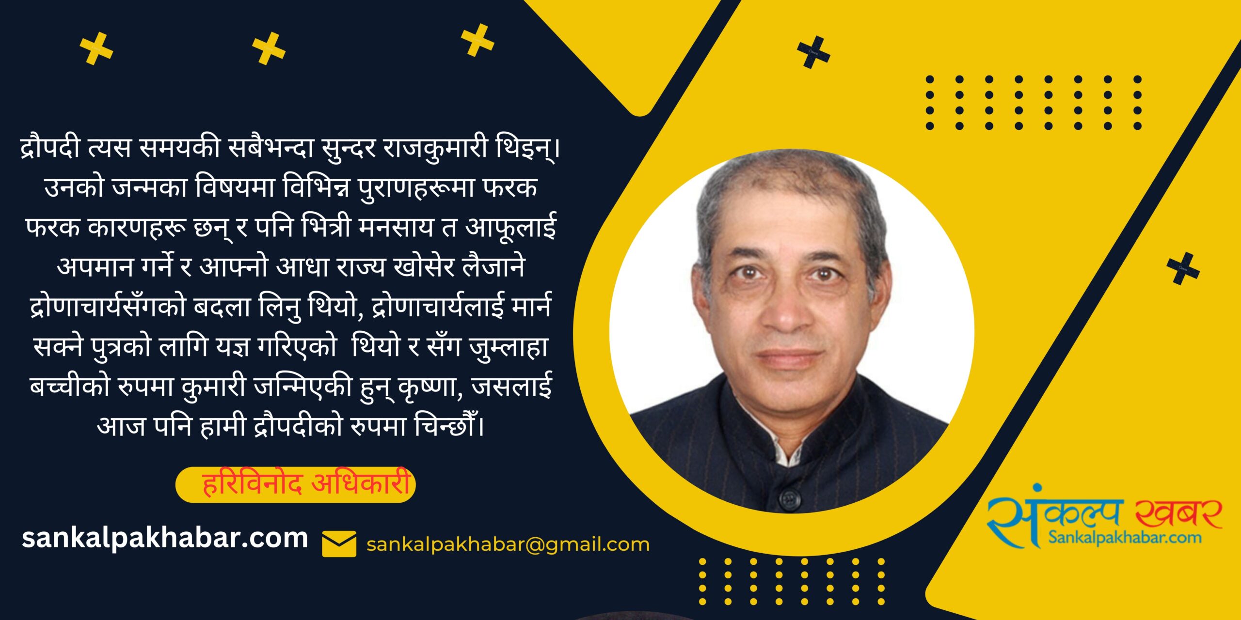 सर्तमा खासै भनिएको थिएन जात, धर्म र कुल तर सामान्यतया राजकुमारीको स्वयंवरमा राजा तथा राजकुमारहरू नै आएकाक थिए। एकातिर दुर्योधनको सहयोगीका रुपमा भए पनि अंग नरेशका रुपमा महारथी कर्ण पनि स्वयंवर प्रयोजनका लागि गएका थिए। त्यो बेलामा कुनचाहिँ राजा थिएन होला, कुनचाहिँ राजकुमार थिएन होला द्रुपद पुत्री द्रौपदीको लालसा नराख्ने, चाहना नराख्ने। द्रुपद महाराजको चाहना अर्जुनसँग विवाह गराउने भएकाले पनि त्यस्तो सर्त राखिएको थियो होला किनभने त्योबेलाको भारतवर्षमा अर्जुन बराबरको धनुर्धर अर्को थिएन भन्ने थियो जसले द्रुपद महाराजलाई समेत बन्दी बनाएर हस्तिनापुर पुर्याएको थियो। क्रमशःINS