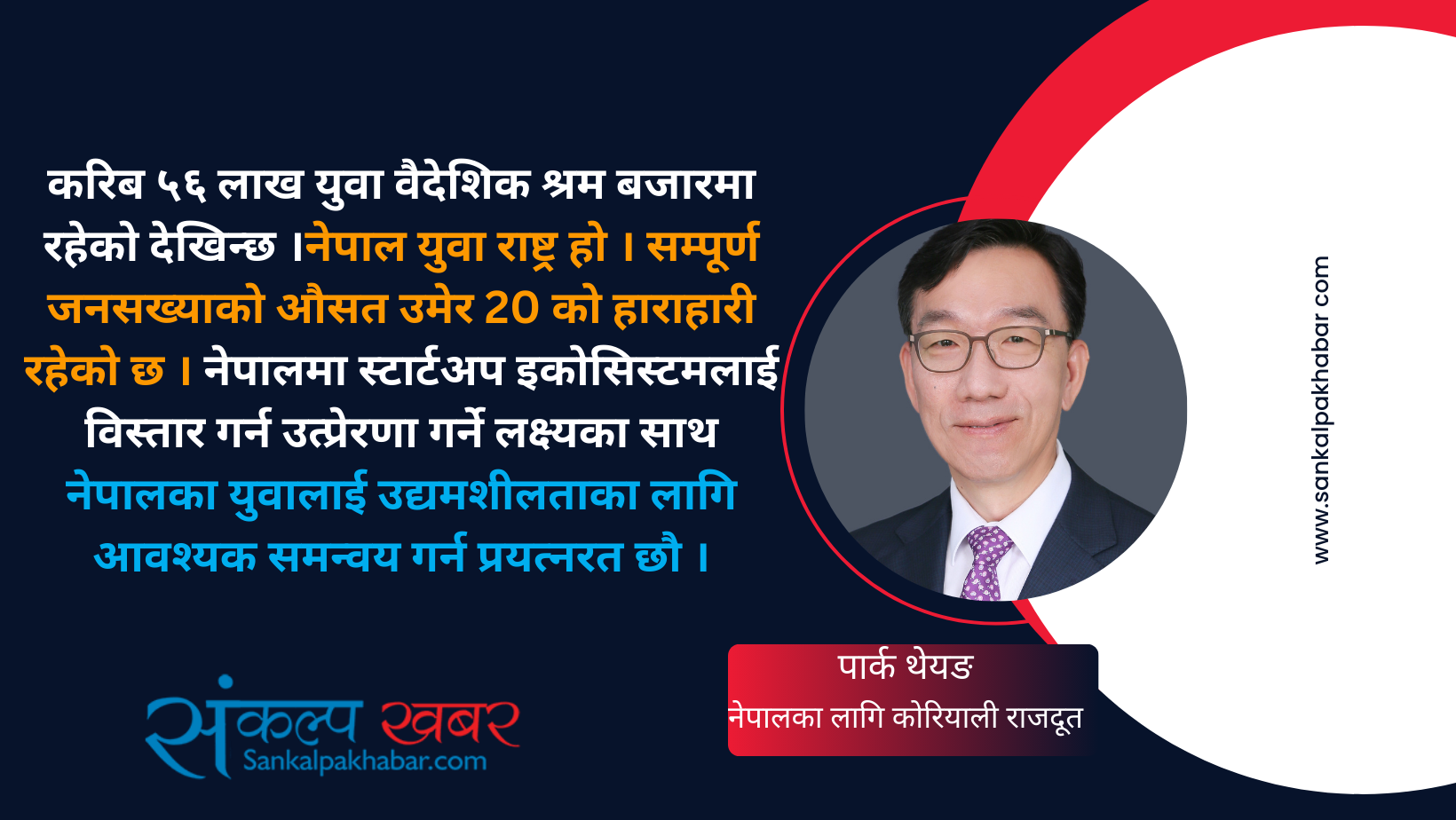 यसै वर्ष दूतावासले कोरियामा रोजगारीको अनुभव भएका र नेपालमा फर्किएर सफलतापूर्वक व्यवसाय गरिरहेका २६ जना व्यवसायीको वास्तविकतामा आधारित सफल व्यावसायिक कथाहरू समावेश गरी “तपाईं पनि मालिक बन्न सक्नुहुन्छ” नामक पुस्तक प्रकाशित गरेको छ । हामीले ती स्टार्टअप सफलताका कथाहरूले प्रवासी श्रमिकका लागि विदेश जानुपूर्व तथा स्वदेश फर्केका विदेशमा रोजगारीको अनुभव भएका कामदारहरुका लागि उद्यमशीलता प्रोत्साहनको अपेक्षा लिएर दूतावासबाट प्रकाशित पुस्तक निःशुल्क रुपमा वितरण गरेका छौँ । वैदेशिक रोजगारीको अनुभव लिएका र नेपाल फर्किएका धेरै व्यक्तिले नेपालमा नै व्यवसाय सञ्चालन गरेर धेरैभन्दा धेरै रोजगारी सिर्जना होस् भन्ने लक्ष्य लिएर सहकार्य गर्दै आएका छौँ र भविष्यमा पनि निरन्तरता दिनेछाँै । हामी निकट भविष्यमा नै नेपाल समृद्ध राष्ट्र भएको हेर्न चाहना लिएर विभिन्न क्षेत्रमा विकास साझेदारी कार्यक्रममा हातेमालो गर्दै आएका छौँ ।