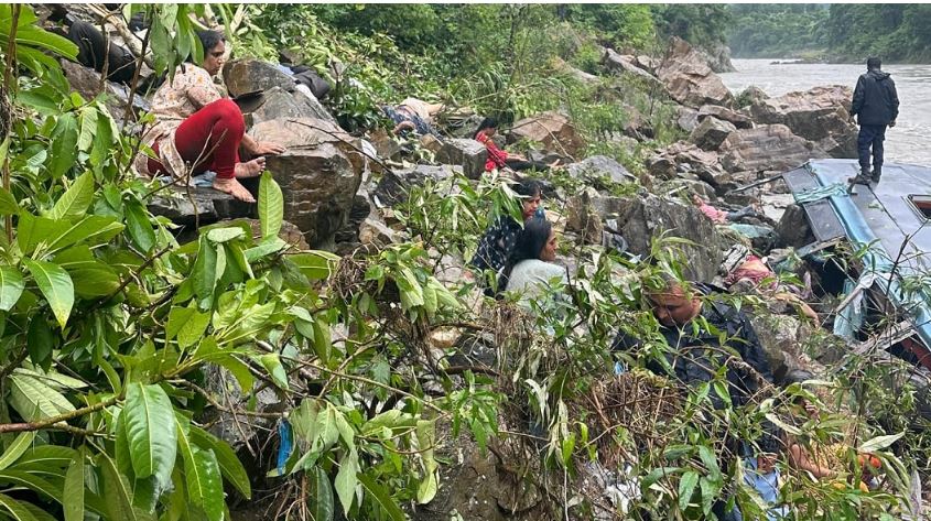 काठमाडौं । तनहुँको आँबुखैरेनीमा भएको बस दुर्घटनामा मृत्यु भएका १४ जनाको शव निकालिएको छ । आँबुखैरेनीस्थित ऐनापहराबाट मर्स्याङ्दी नदीमा बस खसेको हो । पोखराबाट काठमाडौं हिँडेको यूपी ५३ एफडी ७६२३ नम्बरको भारतीय बस मस्र्याङदी नदीमा बसेको थियो ।