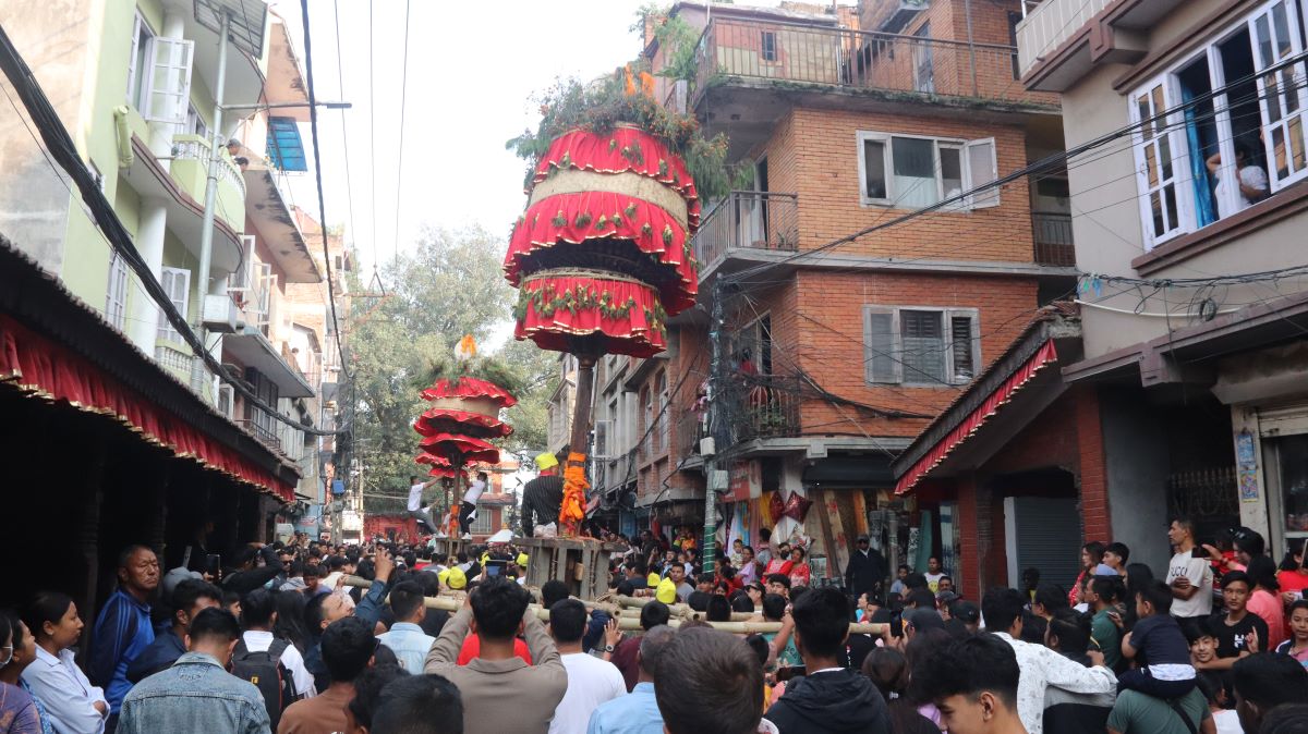 काठमाडौं । काठमाडौँ महानगरपालिका–५ स्थित हाँडीगाउँ क्षेत्रमा प्रदर्शन गरिने चोक्काथुनारायणको जात्राले त्यस क्षेत्रमा रौनकता छाएको छ । जात्रा हेर्न धेरै मानिस हाँडीगाउँ क्षेत्रमा जम्मा भएका छन् ।प्रत्येक वर्ष कोजाग्रत पूर्णिमा पछि गरिने यो जात्रा यस क्षेत्रको प्राचीन मौलिक संस्कृतिका रुपमा मानिँदै आएको छ । यो जात्रालाई तीननारायण एवं ‘कहीँ नभएको जात्रा हाँडीगाउँमा’ समेत भनिन्छ । देशका अन्य स्थानमा हुने जात्रा खटको गजुर उल्टो नपारी गरिने र यहाँको नारायण जात्रा भने उल्टो पारेर गरिने भएकाले कहीँ नभएको जात्रा भन्ने गरिएको हो ।