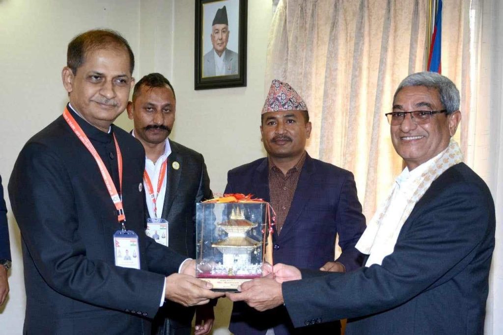 काठमाण्डौं । गृहमन्त्री रमेश लेखकसँग भारतीय सशस्त्र सीमा सुरक्षा बल (एसएसबी) का महानिर्देशक अमृतमोहन प्रसाद नेतृत्वको टोलीले भेटवार्ता गरेको छ ।