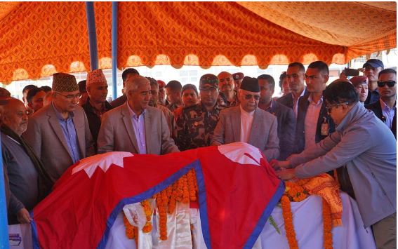 काठमाडौं । प्रधानमन्त्री केपी शर्मा ओलीले दिवंगत पूर्वसभामुख दमननाथ ढुंगानाप्रति श्रद्धाञ्जली अर्पण गरेका छन् । सोमबार प्रधानमन्त्री ओलीले ढुंगानाको पार्थिव शरीरमा राष्ट्रिय झन्डा ओढाउँदै श्रद्धाञ्जली अर्पण गरेका हुन् । प्रधानमन्त्री ओलीले पूर्वसभामुख ढुङ्गाना नेपालको संसदीय अभ्यासमा बेग्लै पहिचान र मान्यता राख्ने बहुआयामिक व्यक्तित्व भएको बताए ।नेपालको संसदीय अभ्यासमा बेग्लै प्रभाव छाड्न सफल भएकाले उहाँले देखाएको बाटोमा हिँड्न सक्नुपर्ने आवश्यकता छ’, ओलीले भने ।
