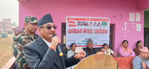 नेपाली कांग्रेस सुर्खेतले आज वीरेन्द्रनगरमा आयोजना गरेको कार्यकर्ता भेटघाट कार्यक्रममा गृहमन्त्री लेखकले सरकारले जनतालाई अनुभूति हुनेगरी काम गरिरहेको बताए । देशमा स्थायी सरकार आवश्यक परेका कारण दुई ठूला दलको गठबन्धनको सरकार बनेको उल्लेख गर्दै वर्तमान सरकारको मुख्य उद्देश्य देशमा स्थायित्व, विधिको साशन कायम गर्दै भ्रष्टाचार नियन्त्रण गरेर सुशानसन कायम गर्नु रहेको बताए ।