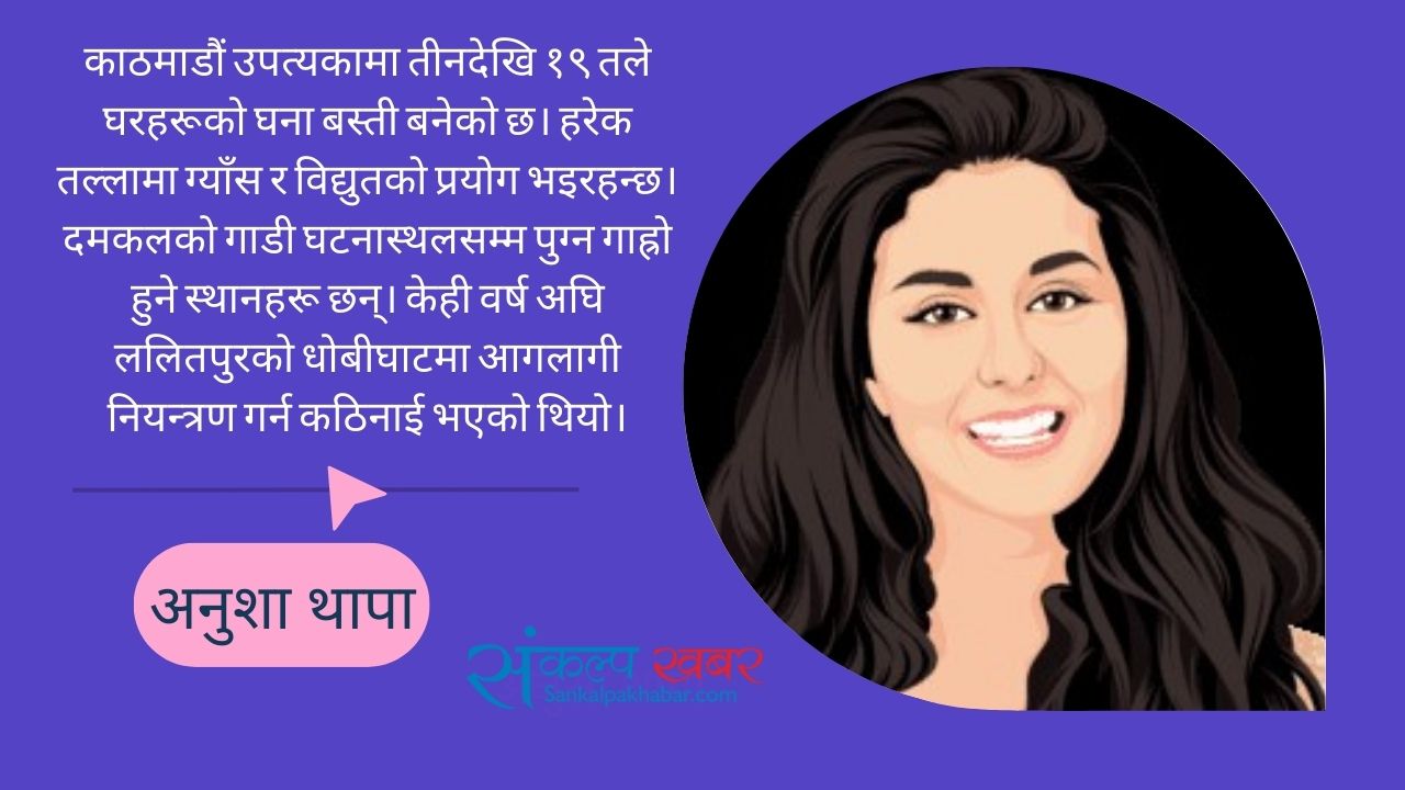 काठमाडौं उपत्यकामा तीनदेखि १९ तले घरहरूको घना बस्ती बनेको छ। हरेक तल्लामा ग्याँस र विद्युतको प्रयोग भइरहन्छ। दमकलको गाडी घटनास्थलसम्म पुग्न गाह्रो हुने स्थानहरू छन्। केही वर्ष अघि ललितपुरको धोबीघाटमा आगलागी नियन्त्रण गर्न कठिनाई भएको थियो।