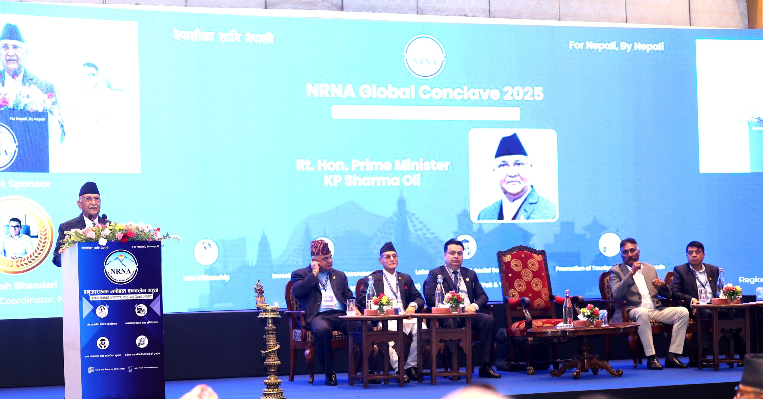 सङ्घद्वारा आयोजित ‘एनआरएनए ग्लोबल कन्क्लेभ’ को आज उद्घाटन गर्दै प्रधानमन्त्री ओलीले यो संस्थाको उद्देश्यसँग नमिल्ने प्रवृत्तिहरु देखा पर्नु उचित नहुनेमा जोड दिँदै संकीर्ण भावना त्यागेर उन्नतस्तरको एकतामा लाग्न आग्रह गरे ।