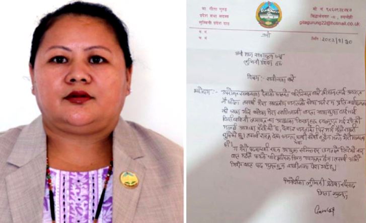 बुटवल । जनमत पार्टीकी लुम्बिनी प्रदेशसभा सदस्य गीता गुरुङले हस्तलिखित राजीनामा पत्र इमेलमार्फत प्रदेशसभामा पठाएकी छन्। दुई महिनादेखि बेलायतमा बस्दै आएकी गुरुङले मंगलबार प्रदेशसभा सदस्य पदबाट राजीनामा दिएको दाबी उनका श्रीमान् कैलाश गुरुङले सामाजिक सञ्जालमार्फत सार्वजनिक गरेका थिए।