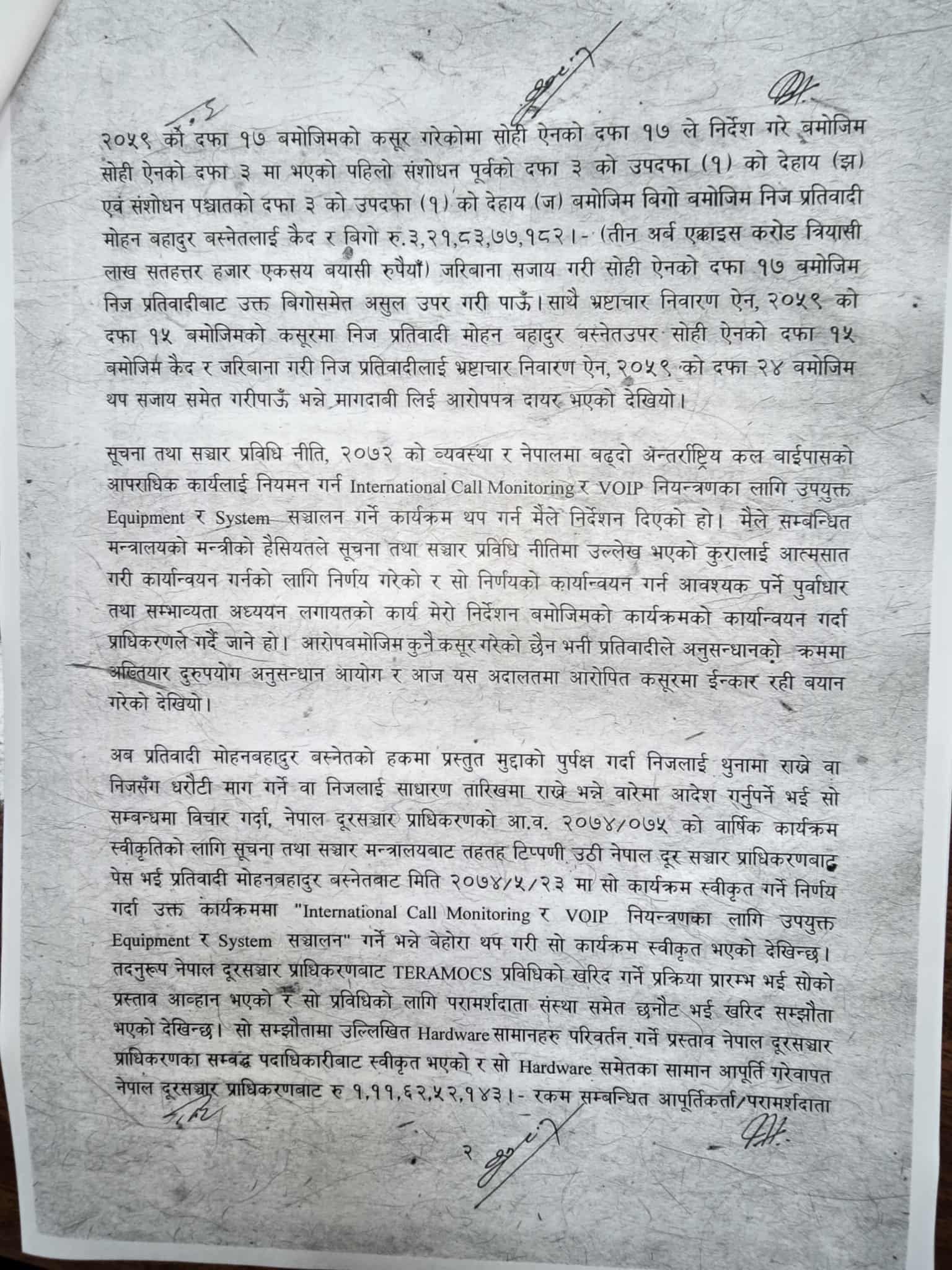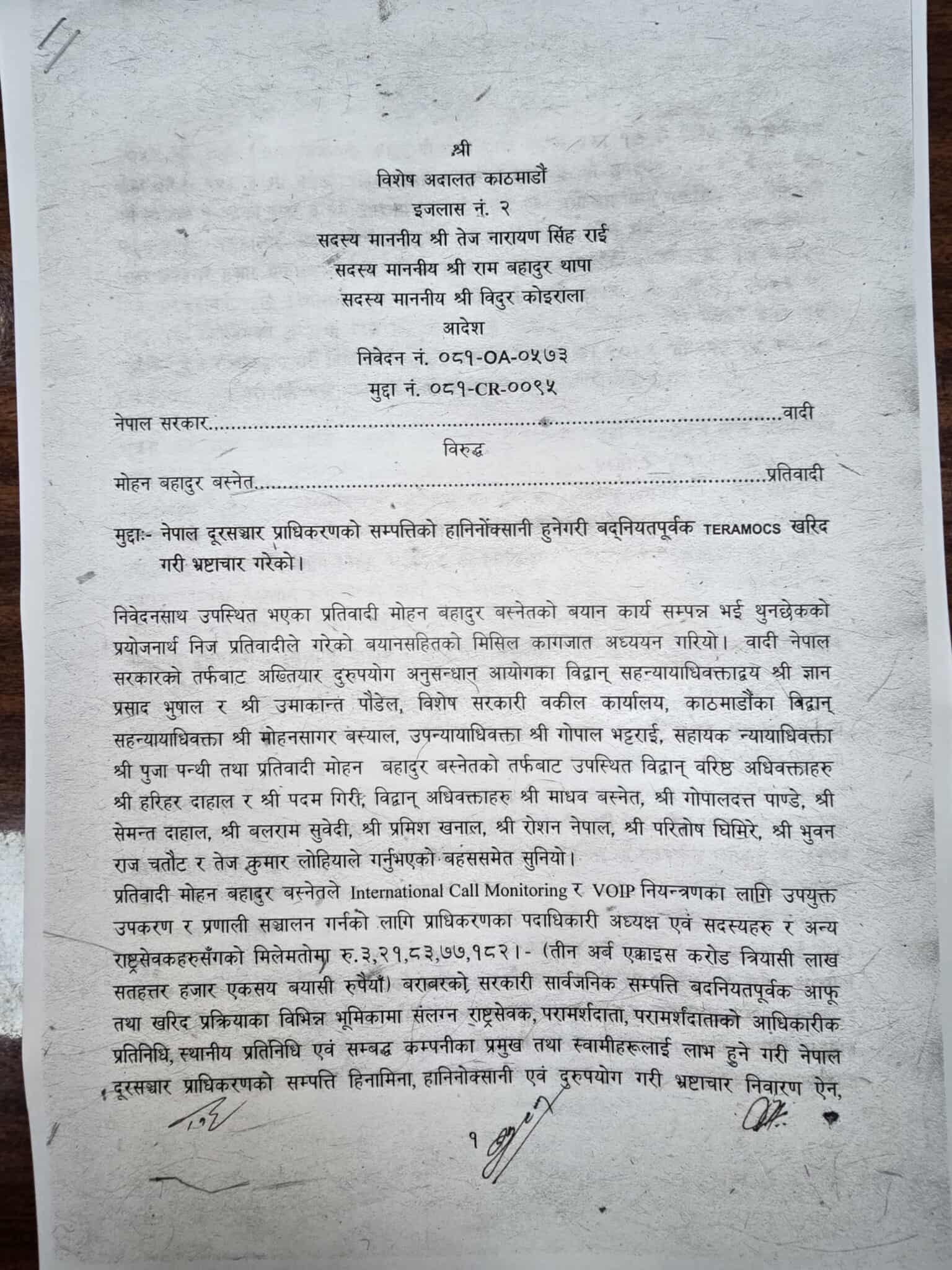 विशेष अदालत, काठमाडौंमा आइतबार बस्नेतमाथिको थुनछेक बहसपछि यस्तो आदेश जारी भएको हो ।