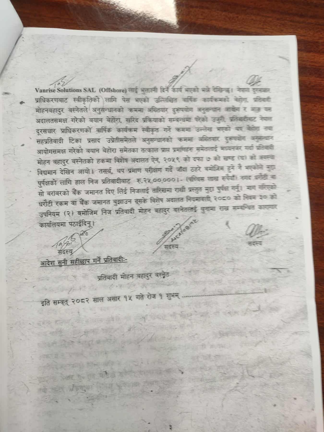 विशेष अदालतका न्यायाधीश तेज नारायण सिंह राई, राम बहादुर थापा र विदुर कोइरालाको इजलासले बस्नेतविरुद्ध उक्त धरौटी मागको आदेश दिएका हुन् ।