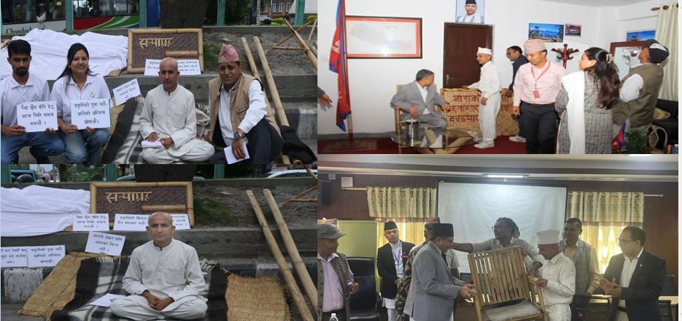 दिक्तेल रुपाकोट मझुवागढी नगरपालिका प्रमुख तीर्थराज भट्टराई आइतबार बिहानदेखि माइतीघर मण्डलामा बाँसका सामाग्रीसहित सत्याग्रहमा बसेका छन्। माग स्पष्ट छ – बाँस र अन्य स्थानीय उत्पादन प्रवर्द्धन। तर, सरकारको दृष्टि अपार सम्भावनातिर होइन, राजनीतिक चक्कर र भाषणमा सीमित देखिन्छ।