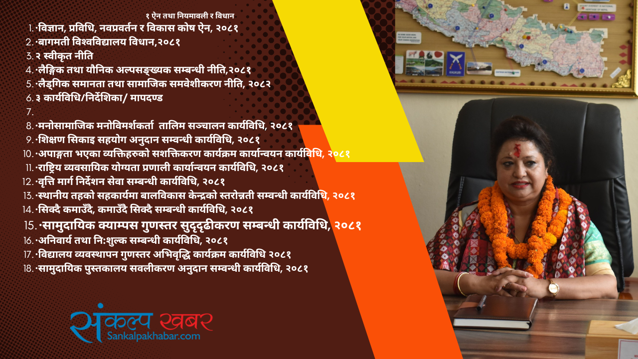 मन्त्री खड्गीको नेतृत्वमा बागमती प्रदेशमा सामाजिक क्षेत्रको रूपान्तरणतर्फ ठोस कदम चालिएको देखिन्छ। शिक्षा, स्वास्थ्य, समावेशिता र सीप विकासमा आधारित यी प्रयासहरू आगामी वर्षहरूमा स्थायी सुधार र सामाजिक न्यायको आधारशिला बन्ने अपेक्षा गरिएको छ।