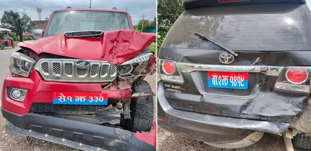 कैलाली। सुदूरपश्चिम प्रदेश सरकारका दुई मन्त्री चढेका सवारीसाधन आपसमा ठोक्किने घटना मंगलबार दिउँसो कैलालीको चिसापानीमा भएको छ।