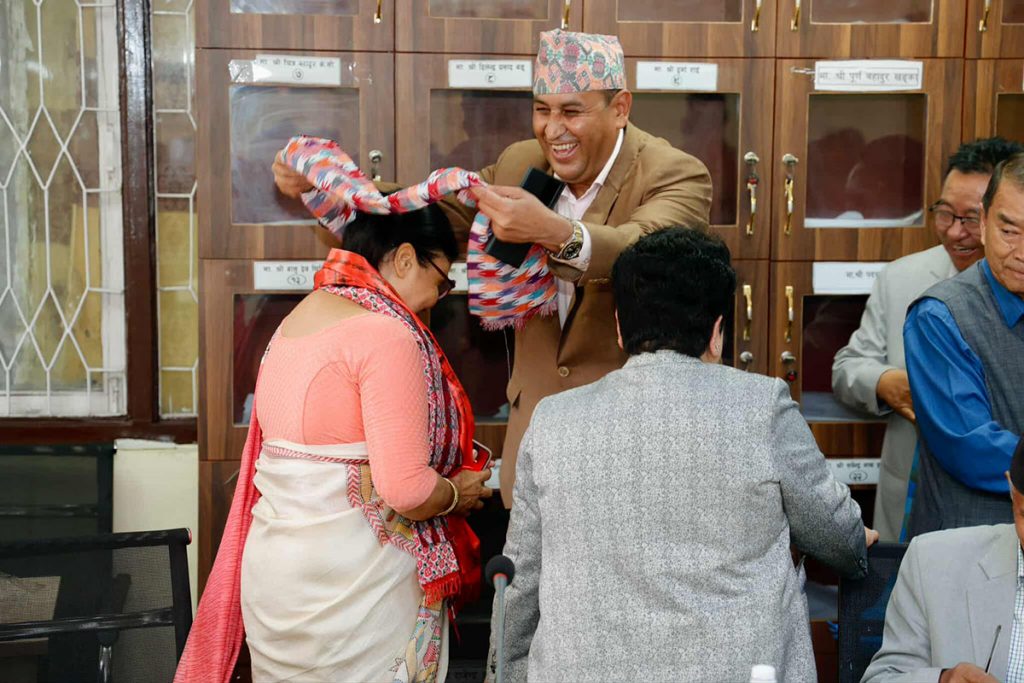 नव–निर्वाचित सभापति न्यौपानेले आजै सभामुखसँग पद तथा गोपनियताको शपथ लिनेछन्। नेपाल विद्यार्थी सङ्घबाट राजनीतिक यात्रा सुरु गरेकी उनी हाल नेपाली कांग्रेसकी केन्द्रीय सदस्य तथा महिला विभाग प्रमुखसमेत रहेकी छन्। यसअघि उनी संविधानसभा सदस्य र संसदीय दलकी सचेतकसमेत रहिसकेकी छन्।