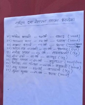 प्रहरीका अनुसार दिउँसो ३ बजेसम्म मात्रै ४९ जना घाइते अस्पताल पुगेका थिए। त्यसपछि पनि थप घाइतेहरू निरन्तर ल्याइएका छन्। अस्पताल स्रोतका अनुसार घाइतेहरूको अवस्था सामान्यदेखि गम्भीरसम्मका छन्। तत्काल उपचार भैरहेको र थप विवरण संकलन भइरहेको प्रहरीले जनाएको छ।