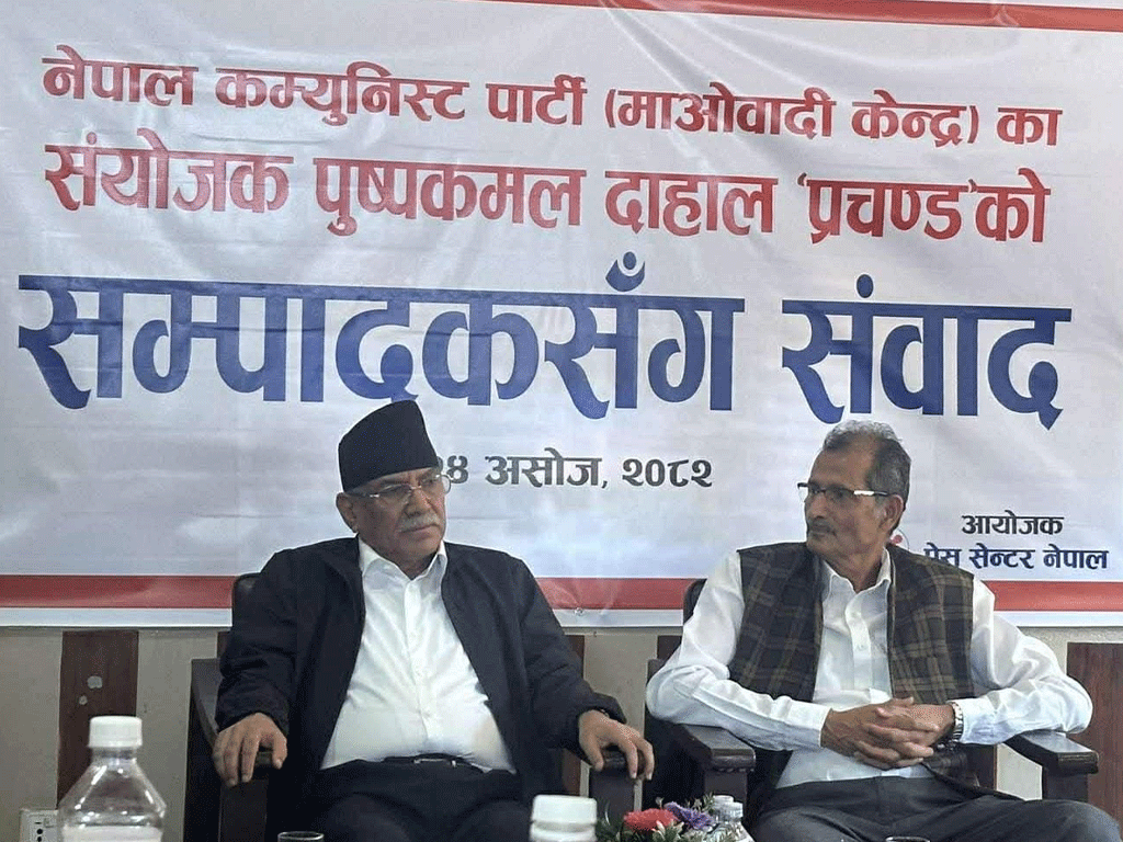 काठमाडौँमा सम्पादकहरूसँगको संवादमा ‘प्रचण्ड’ले एमालेका अध्यक्ष केपी ओलीलाई संकेत गर्दै अझै सत्तामा हुँदाजस्तै अहंकार देखाएको बताए।