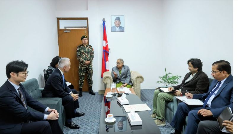 काठमाडौं । नेपालका लागि जापानका राजदूत मायदा तोरूले प्रधानमन्त्री सुशीला कार्कीसँग सिंहदरबारस्थित प्रधानमन्त्री तथा मन्त्रिपरिषद् कार्यालयमा भेटवार्ता गरेका छन्। प्रधानमन्त्रीको सचिवालयका अनुसार भेटवार्तामा नेपाल–जापान सम्बन्धको ७० औँ वर्षगाँठका अवसरमा दुई देशबीचका विविध पक्षहरूमा छलफल भएको थियो।