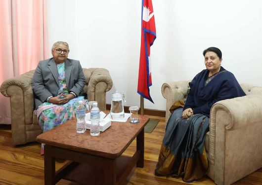 काठमाडौं । पूर्वराष्ट्रपति विद्यादेवी भण्डारी र प्रधानमन्त्री सुशीला कार्कीबीच सिंहदरबारमा आइतबार भएको भेटवार्तामा आसन्न प्रतिनिधिसभा निर्वाचनको तयारी प्रमुख विषय बनेको छ।