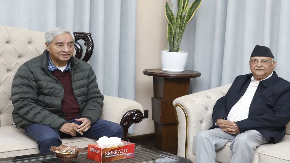 शुक्रबार महाराजगञ्जस्थित देउवाको निवासमै पुगेर ओलीले देउवासँग भेटवार्ता गरेका हुन् । भेटमा समसामयिक राजनीतिक अवस्था, संसद् विघटनपछिको घटनाक्रम र राष्ट्रिय सभाको निर्वाचनबारे छलफल भएको बताइएको छ । औपचारिक रूपमा छलफलको विवरण सार्वजनिक नगरिए पनि ओलीले सहकार्यको प्रस्ताव गरेको एमालेनिकट नेताहरूले बताएका छन् ।