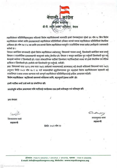 कांग्रेस केन्द्रीय कार्यसमितिको स्पष्ट अडान भने फरक छ। केन्द्रीय कार्यालयद्वारा जारी विज्ञप्तिमा मंसिर १५ गते नै १५औँ नियमित महाधिवेशनको कार्यतालिका सर्वसम्मत रूपमा पारित भइसकेकाले सोही अवधिमा माग गरिएको विशेष महाधिवेशनको औचित्य स्वतः समाप्त भइसकेको दाबी गरिएको छ। अझ महत्वपूर्ण कुरा, विज्ञप्तिमा कुनै पनि तहको अधिवेशन वा विशेष महाधिवेशन बोलाउने अधिकार व्यक्तिगत पदाधिकारीलाई नभई केवल केन्द्रीय कार्यसमितिलाई मात्र रहेको स्पष्ट पारिएको छ।