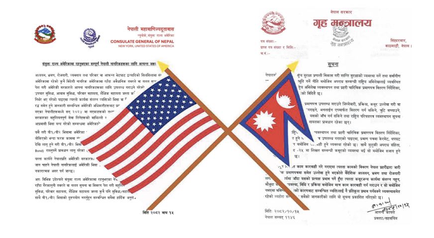 काठमाडौं । पछिल्लो समय अमेरिकाबाट नेपाल सरकारमाथि बढ्दै गएको कूटनीतिक दबाब अब औपचारिक सूचनामै प्रतिबिम्बित हुन थालेको छ। अमेरिकी सुरक्षा चासो र भिसा नीतिसँग जोडिएका प्रश्नहरूलाई सम्बोधन गर्ने प्रयासस्वरूप परराष्ट्र मन्त्रालय र गृहमन्त्रालयले अलग–अलग सूचना सार्वजनिक गरेका छन्। यी दुई पत्रलाई नेपालले अमेरिकालाई पठाएको सन्देशका रूपमा विश्लेषण गर्न थालिएको छ।
