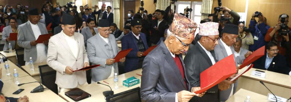 काठमाडौं । राष्ट्रियसभाका १८ नवनिर्वाचित सदस्यहरूले पदभार सम्हालेका छन्। राष्ट्रिय सभाका अध्यक्ष नारायणप्रसाद दाहालले उनीहरूलाई औपचारिक रूपमा शपथ गराएका हुन्। गत माघ ११ गते यी रिक्त सदस्य पदका लागि निर्वाचन सम्पन्न भएको थियो। निर्वाचन आयोगका अनुसार कोशी, मधेस, बागमती, गण्डकी, लुम्बिनी, कर्णाली र सुदूरपश्चिम प्रदेशका विभिन्न प्रतिनिधिहरू निर्वाचित भएका हुन्।