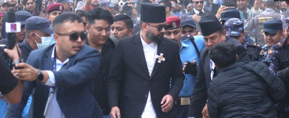 शाह ‘सिलाम साक्मा’ लगाएर सपथ ग्रहण स्थलमा पुगेका हुन्, जसले कार्यक्रममा सांस्कृतिक झल्को थपेको छ।