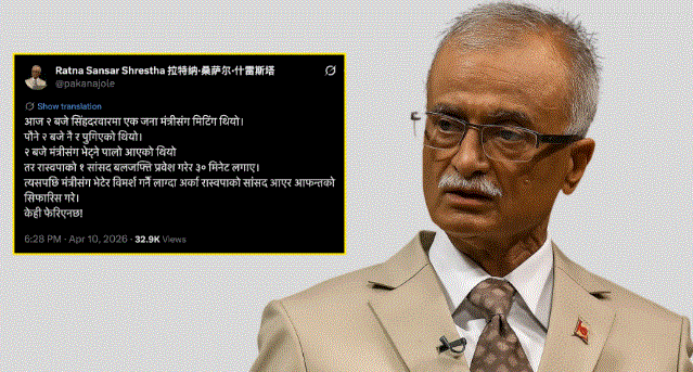 रत्नसंसार श्रेष्ठले सामाजिक सञ्जालमा लेख्दै नयाँ भनिएका नेताहरूको व्यवहार पुरानै शैलीको जस्तो देखिएको टिप्पणी गरेका छन्। “केही पनि फेरिएको जस्तो लागेन,” भन्ने निष्कर्ष उनले सार्वजनिक रूपमा राखेका छन्। आफ्नो अनुभवलाई उनले चर्चित फ्रान्सेली उखानमार्फत व्यक्त गरेका छन्—“जति धेरै कुरा बदलिन्छन्, त्यति नै उस्तै रहन्छन्।” उनका अनुसार राजनीतिक परिवर्तनपछि पनि व्यवहारमा सुधार नदेखिनु चिन्ताजनक हो। उनको उक्त अभिव्यक्ति सामाजिक सञ्जालमा तीव्र रूपमा फैलिएको छ र धेरैले यसलाई वर्तमान राजनीतिक कार्यशैलीप्रतिको प्रतिनिधि अनुभवका रूपमा लिएका छन्। रत्नसंसार श्रेष्ठको अनुभवले राजनीतिक परिवर्तनसँगै व्यवहारगत सुधारको अपेक्षा अझै पूरा हुन नसकेको संकेत गरेको बुझिएको छ ।